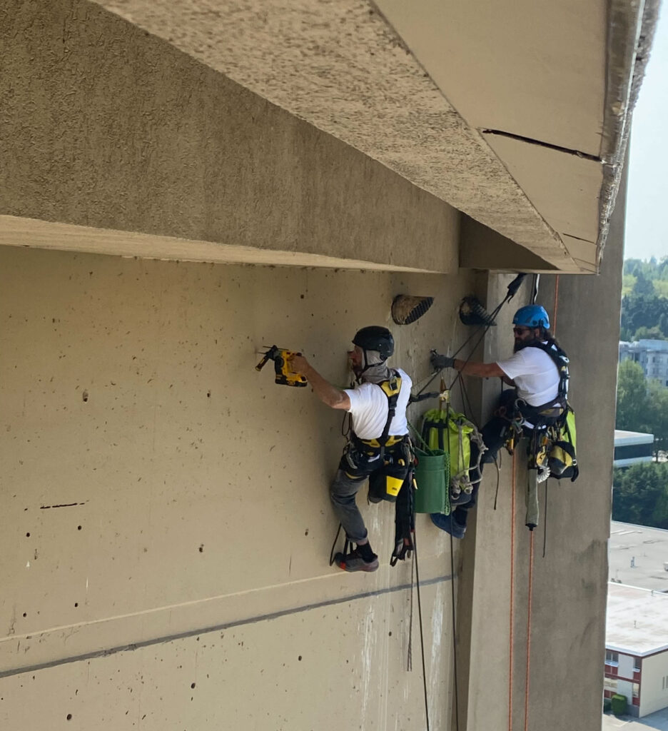 Rope access technicians can safely reach and thoroughly examine high exterior surfaces without the expense and disruption of scaffolding. This makes regular, detailed inspections more practical and cost-effective, allowing you to maintain your building envelope proactively.